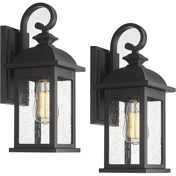 Exterior Wall Sconce,2 Packs Outdoor Waterproof Wall Lights Fixture,E26 Socket Wall Lantern for Porch,Anti-Rust Matte Black Finish with Seeded Glass Lampshade