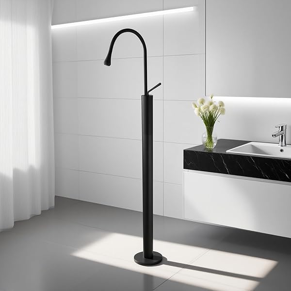 Matte Black Freestanding Tub Faucet, Floor Mounted Single Handle Stainless Steel Tub Filler Without Handheld Spray for Bathtub