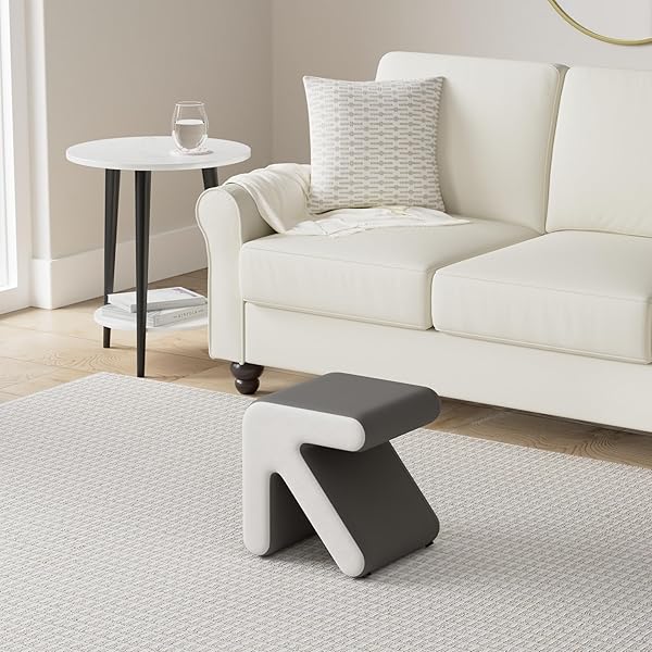 Modern Velvet Upholstered Ottoman, Exquisite Small End Table, Soft Foot Stool with S-Shape, Dressing Makeup Chair, Comfortable Seat for Living Room, Bedroom, Entrance (Grey, Arrow) 18.1"D x 19.3"W x 18.1"H Grey