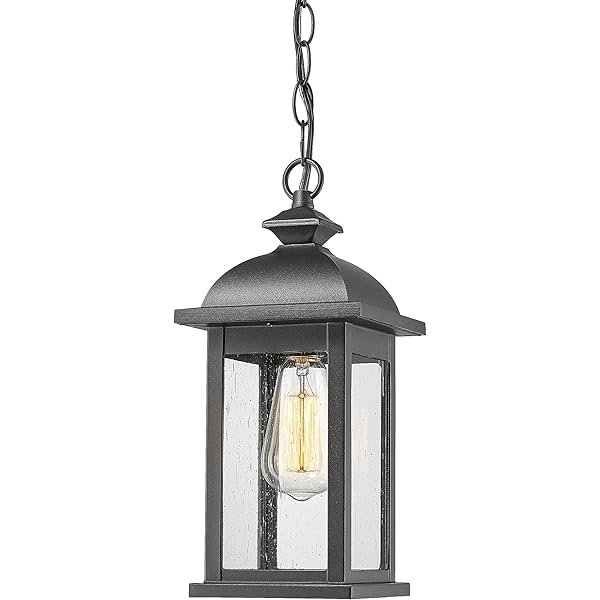 Outdoor Pendant Lights for Porch, Exterior Hanging Latern Outdoor Hanging Light Fixture, Black Finish with Clear Glass